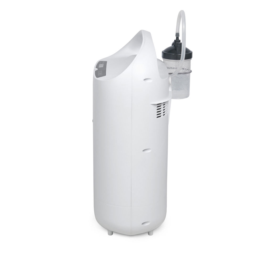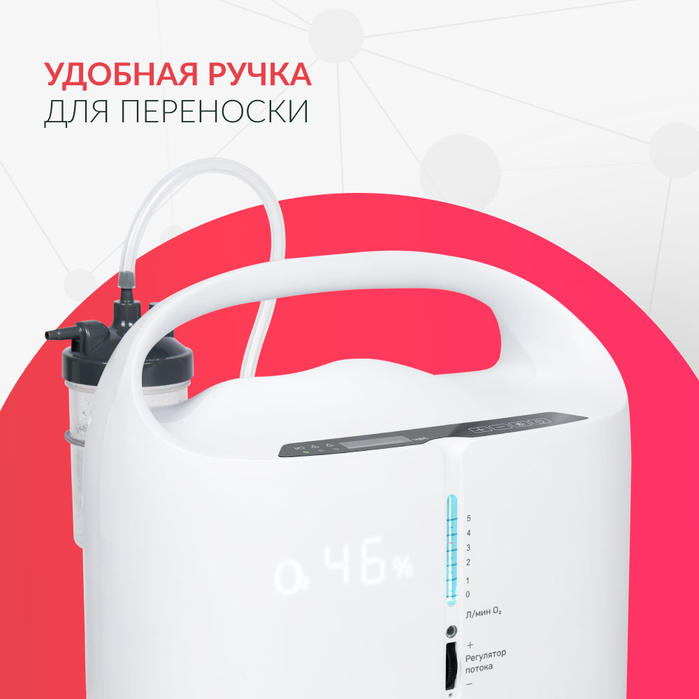 Аппарат преобразует обычный воздух в концентрированную кислородную смесь. Устройство может использоваться в профилактических и лечебных целях. Переносная модель имеет закругленную ручку.