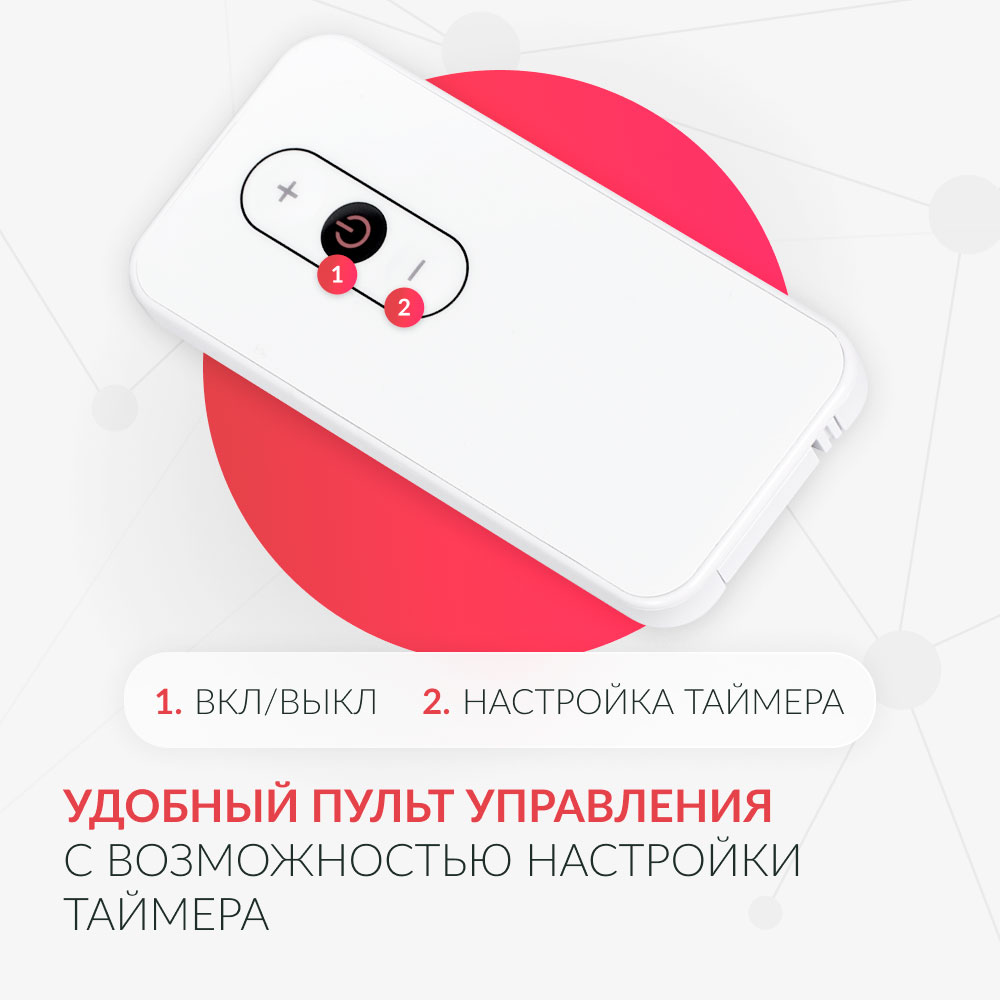 - Таймер работы позволяет соблюдать режим терапии. Возможная продолжительность процедуры – от 1 минуты до 2 часов;