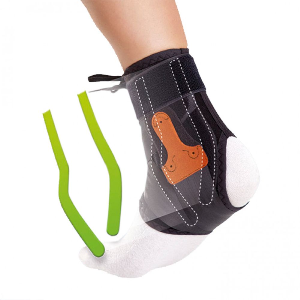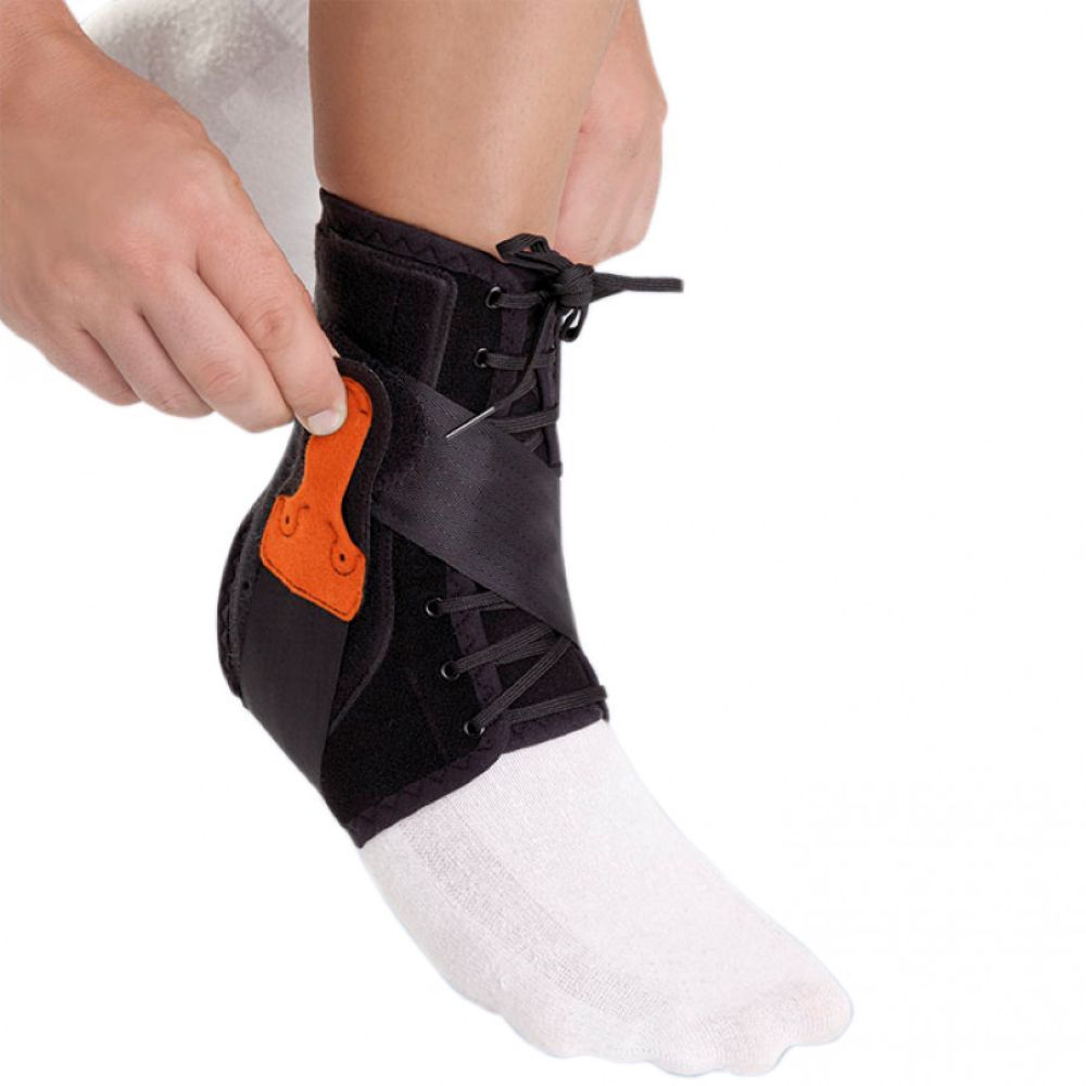 Голеностопный ортез EST-090 с двойной системой шнуровки. Полужесткая фиксация, износостойкий велюр, антибактериальная подкладка. Предназначен при разрыве связок, реабилитации  после операций, а также для профилактики спортивных травм.